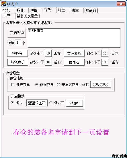 奇刃辅助存仓界面